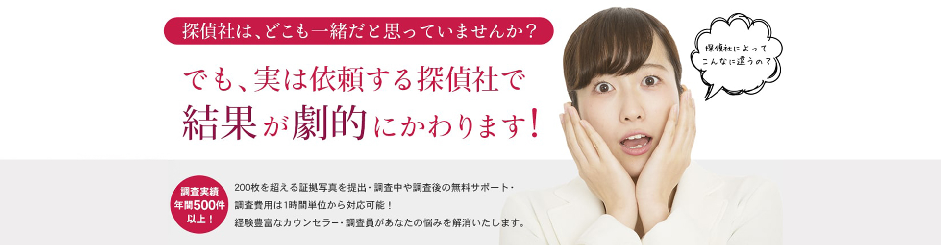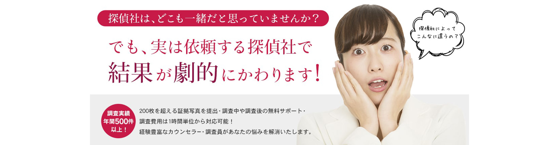 自分の悩みを他人に話すことは勇気のいることで、こんなことを聞いたら失礼じゃないか?など、ご依頼者の中には、かなり気弱になられている方も数多くおられます。しかし、私達はご依頼者の抱えている問題を共有することが問題解決にとても大切だと心得ております。夫婦間や男女間での不安を抱えていながらも、思い切って受話器を手にしたご依頼者の心境はこれまでの経験でスタッフ一同よく心得ていますので最初は話せるところからで結構なので気軽にお電話ください。